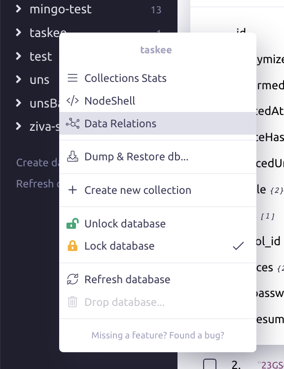 Usually, there is very little you have to do for relations to work properly in Mingo. To view the currently known relations, right-click the database in the sidebar and select Data Relations: