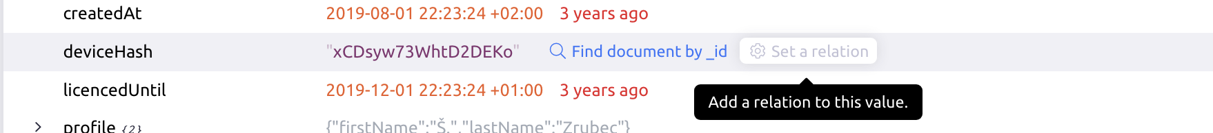 To make your data more readable, Mingo analyzes possible data relations within a database and shows more human information about the referenced documents and the relation itself.