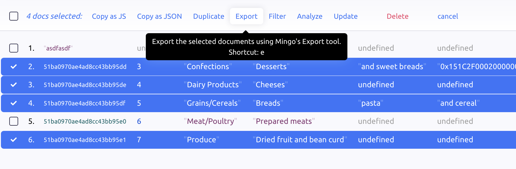 However, Mingo also has some new intuitive “hovering” shortcuts. Just hover over a document and press space or X to select the document. Or hover a document and CMD+C / CTRL+C to copy document value.
