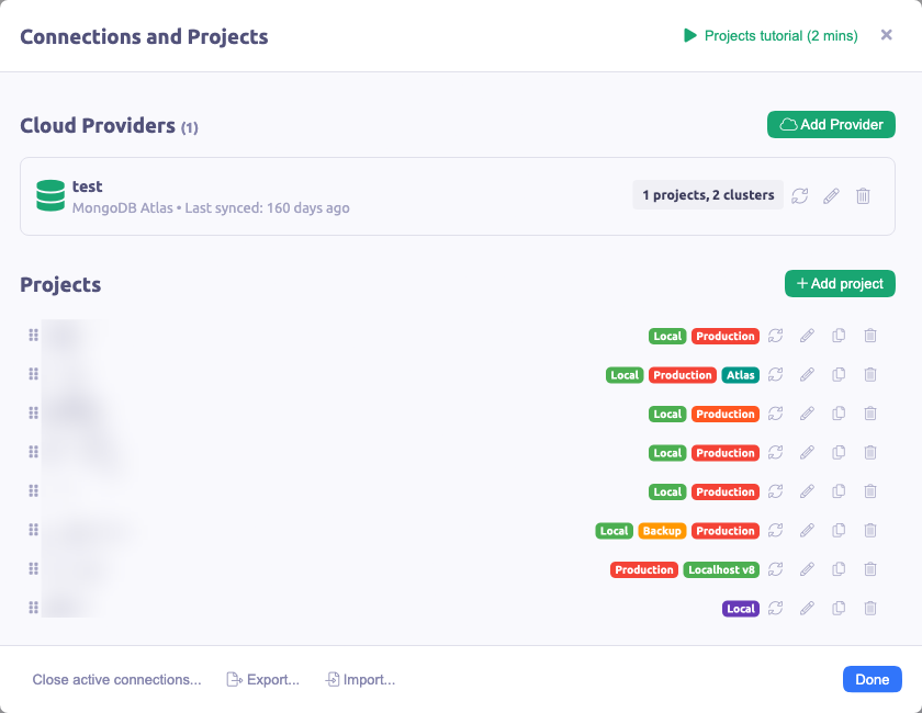 Create, update, refresh, and delete MongoDB connections in Mingo, including SSH tunnel and TLS support.